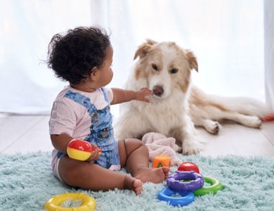 Divers objets s’ajouteront à votre maison : tapis d’éveil, balançoire, berceau électrique, jouets qui font du bruit, poussette, etc. Intégrez ces objets un à un dans l’environnement, et mettez-les en mouvement progressivement, tout en associant l’expérience à quelque chose d’agréable pour votre chien, surtout s’il présente des signes de peur.