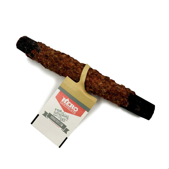 HeroDogTreats 100% natural beef basted collagen treats, wrapped in beef trimmings are a long lasting chew that helps promote healthy teeth and gums. Rich in amino acids to help reduce joint pain and keep your pets coat shiny. Great for heavy chewers.