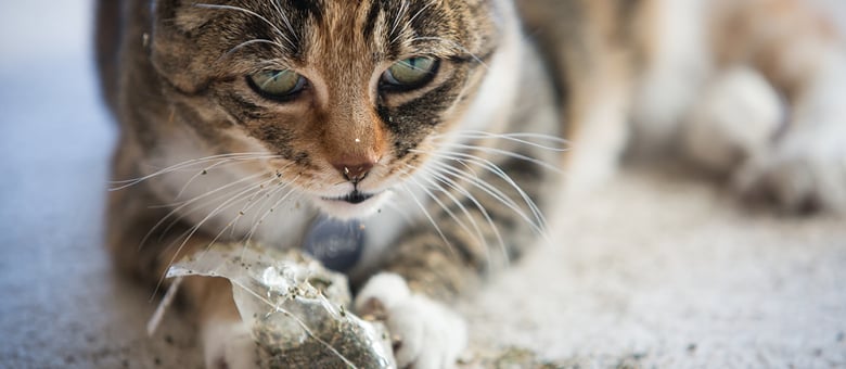 Catnip is sold in garden centres and is available fresh all summer long. It can also be bought at pet shops in the form of dried herbs or essential oil for vaporizing. Many cat toys also contain catnip in varying amounts. The genus Nepeta is made up of several other plants often found in landscaping arrangements. As a result, they sometimes attract neighbourhood cats! Nepetalactone is also found in tartarian honeysuckle, whose chips are often used to fill cat toys.
