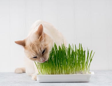In Europe more than in Quebec, a distinction is made between catnip and cat grass. Catnip is a plant that acts as a stimulant when sniffed. Cat grass (or kitty grass) describes several different types of grass that have no euphoric effect. It satisfies cats’ need for gustatory and tactile stimulation and allows them to safely eat plants since indoor plants are often toxic. Although it is completely safe for cats to eat, cat grass can act as a purgative and cause vomiting. It is therefore recommended that you discuss the matter with your veterinarian before you continue feeding cat grass to your cat.