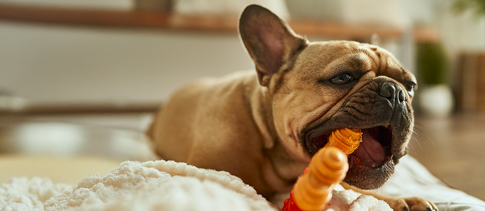 Made of durable rubber, this toy stimulates your dog's teeth and gums while offering a fun mental challenge.