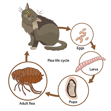 Treating your pets means treating your environment. To eliminate external and internal fleas, use antiparasitic products that combine multiple molecules. The majority of these products will kill fleas in a few hours, but at least 3-4 months’ treatment is required to eliminate all the stages of their growth cycle.
