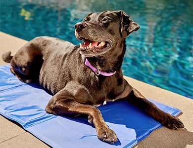 Outdoors, set up a well-ventilated shady spot. Indoor, let your dog rest in the cooler areas of the house, away from sun-exposed windows. A cooling mat or a cooling pad can also help them relax during peak heat.