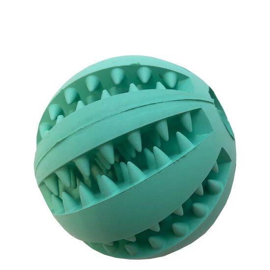 This durable toy acts as a treat dispenser and the soft surface combined with the flexible soft spikes can remove tartar while massaging the gums. The minty fresh flavour also acts as a breath freshener.