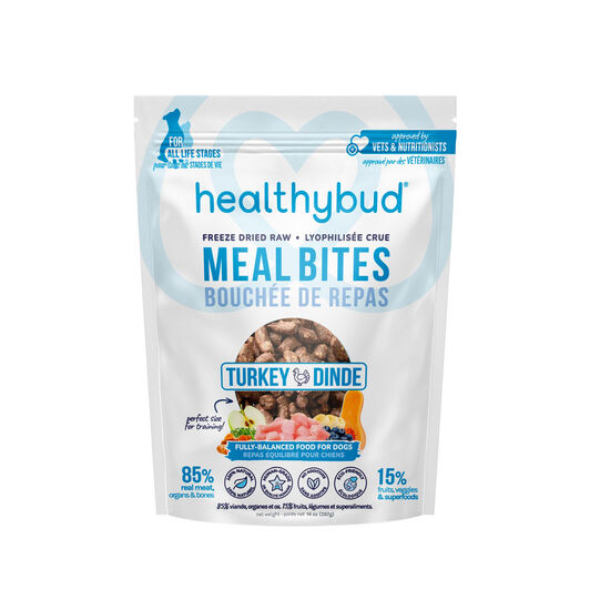 Our freeze-dried turkey bites provide the powerful benefits of raw food with the convenience of kibble. These meals are packed with unique ingredients and superfoods to help strengthen your dog’s immune system and provide a delicious combination of antioxidant-rich foods. Our complete & balanced diets are formulated alongside veterinarians, nutritionists and partner universities.