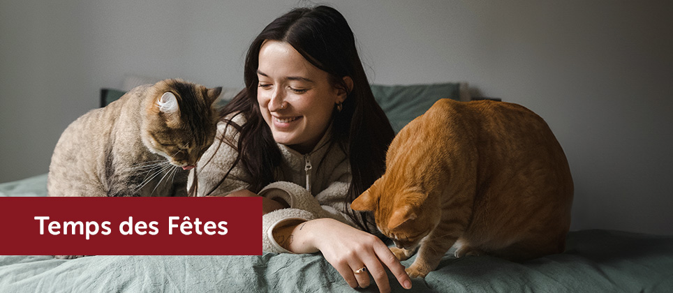 Préparez des Fêtes sécuritaires et sans stress avec votre chat et votre chien. Découvrez nos 5 conseils pratiques pour protéger vos animaux et profiter d’un temps des Fêtes magique.
