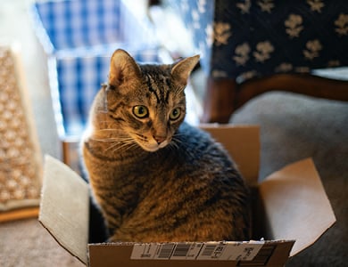 Il n’existe qu’un seul critère de sélection pour le chat : il faut que la boîte soit trop petite pour lui! N’avez-vous jamais remarqué à quel point votre chat semble préférer les boîtes où il doit s’y encastrer plutôt que de simplement s’y coucher? L’amour des chats pour les boîtes est bien réel et il est parfaitement explicable du point de vue éthologique (la science du comportement animal).