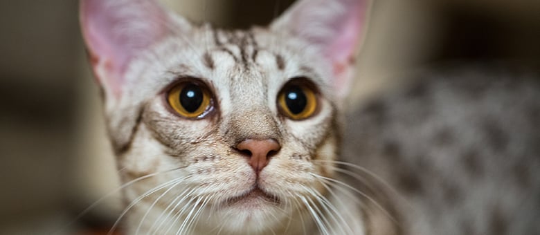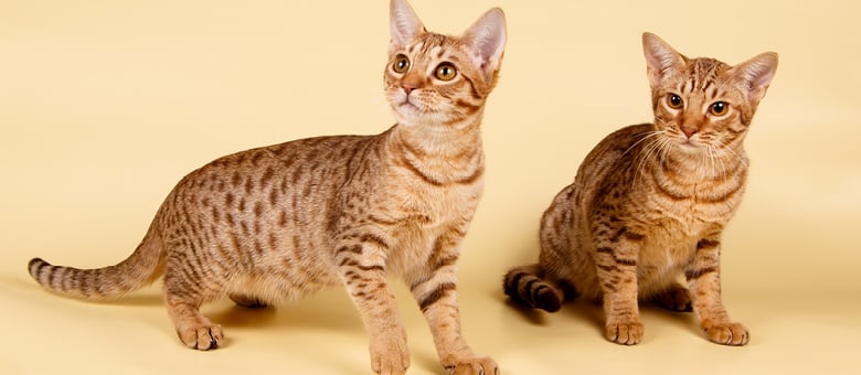 Il s’agit d’un chat magnifiquement proportionnel. Il est long et grand, du fait de la hauteur de ses pattes. Il possède une tête légèrement triangulaire comparée à ses ancêtres orientaux ou même siamois. Ses grands yeux en forme d’amande laissent percevoir des couleurs variées. En fait, seul le bleu est exclu pour cette race. Ce chat possède une forte et puissante musculature sans aucune lourdeur. Son poids varie de 3 kg à 6 kg selon le sexe du chat. Ce qui le caractérise est cette fourrure fine et soyeuse, proche du corps. Son poil est court, mais suffisamment long afin de porter cette alternance de plusieurs bandes claires et foncées qui se nomme ticking. Il faut savoir que chaque poil, à l’exception de ceux du bout de la queue, porte plusieurs bandes de couleurs. C’est un chat qui possède une robe se présentant uniquement sur le modèle spotted tabby : plusieurs taches rondes parsèment donc tout son corps, allant des épaules au ventre, jusqu’à sa queue (qui est plus foncée). Enfin, on retrouve un effet collier sur son cou.