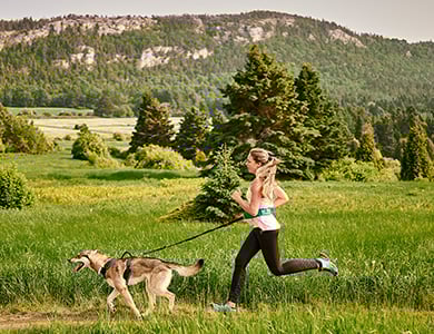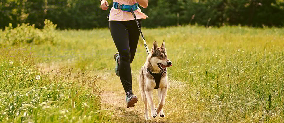 Un bon équipement fait toute la différence! Pour courir en toute liberté et en toute sécurité, pensez à la ceinture de course et à la laisse bungee pour chiens.