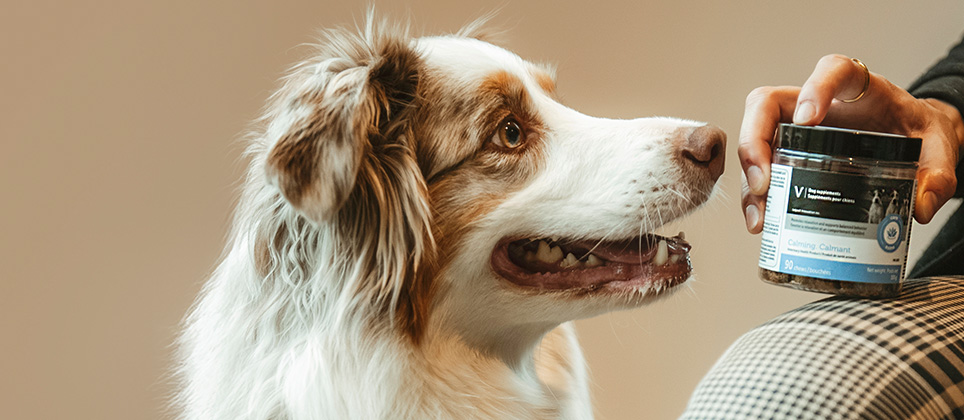 Les suppléments Calmants de V, disponibles pour chiens et chats, sont spécialement conçus pour apaiser ces moments difficiles. Formulés avec des ingrédients reconnus comme le L-tryptophane, la L-théanine et la mélisse citronnelle, ils favorisent la relaxation et un comportement équilibré, en aidant votre animal à mieux gérer son stress.