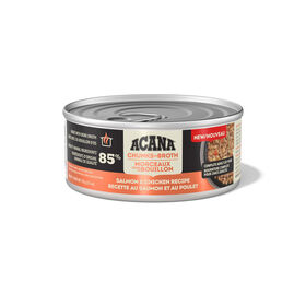 Préparées avec des ingrédients d’origine animale et du bouillon d’os hydratant, les nourritures humides pour chats ACANA MC PREMIUM PÂTÉ et ACANAMC MORCEAUX DANS LE BOUILLON comblent les envies de votre félin en lui procurant les protéines nourrissantes, la saveur et la texture dont il raffole.