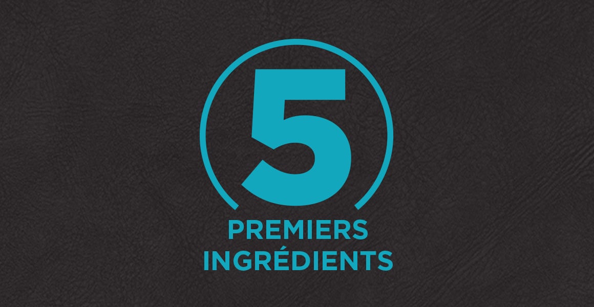 *Les 5 premiers ingrédients sont toujours frais ou crus. | Les ingrédients frais inclus sont livrés à l’état réfrigéré et les ingrédients crus inclus sont livrés à l’état congelé.