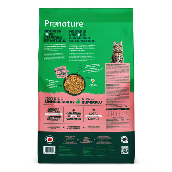 Tu veux que la nourriture de ton chat soit délicieuse parce que pour toi, manger est une source de plaisir. Cependant, pas question de faire de compromis sur la qualité des ingrédients ni sur la valeur nutritive de la recette. On pense de la même façon ! Comme c’est le cas pour tous nos produits, cette savoureuse recette au poulet canadien élevé en liberté avec agneau nourri à l’herbe est constituée d’ingrédients locaux de qualité et de grains entiers 100 % canadiens. Elle ne contient aucun agent de conservation, saveur ou colorant artificiels. On s’est aussi assuré de créer une nourriture qui aide à maintenir le poids santé, à soutenir le système immunitaire et à garder les dents saines. Tu seras peut-être intéressé de savoir que le contenu en fibre aide également à contrôler les vilaines boules de poils ! C’est une nourriture dont tu peux avoir confiance puisqu’elle est conçue en respectant les besoins de ton chat, en toute simplicité. Bon appétit, Minou !